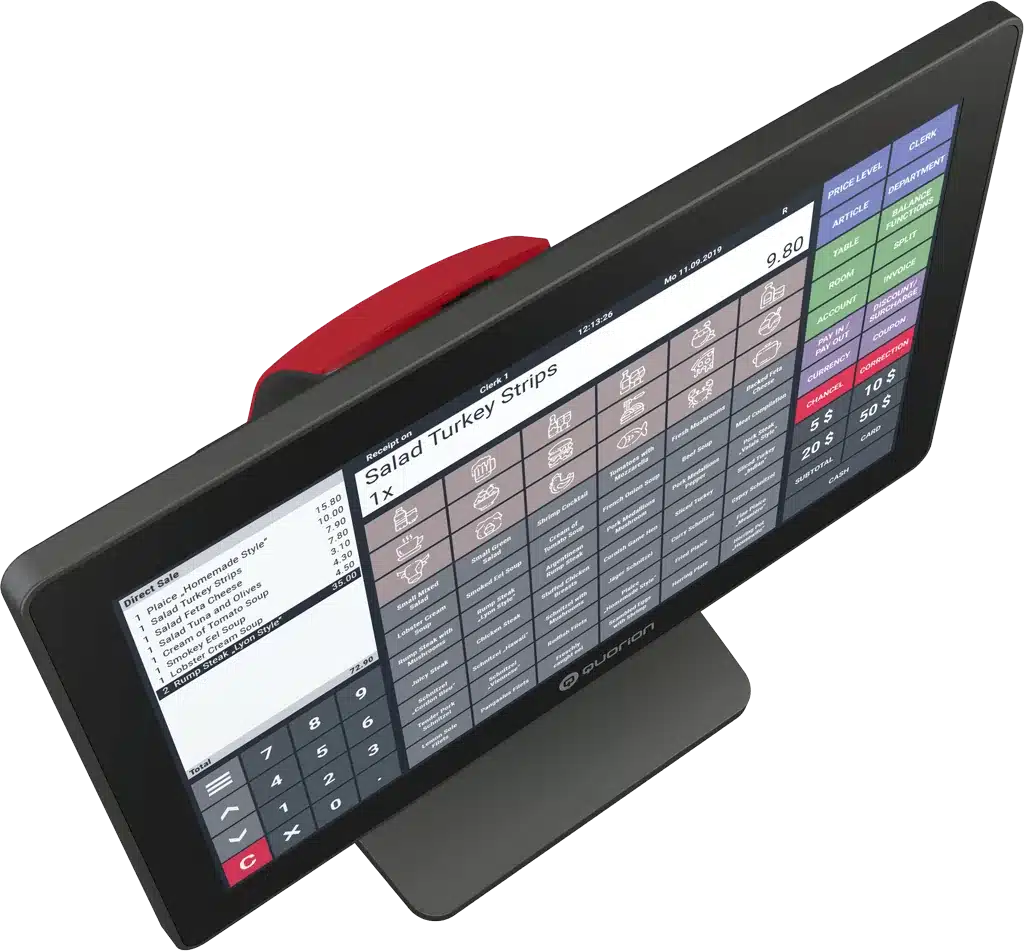 | Kassensoftware | QMP (QUORiON Multi Purpose) – vorinstalliert, hochgradig anpassbar, unterstützt hybride Geschäftsmodelle |